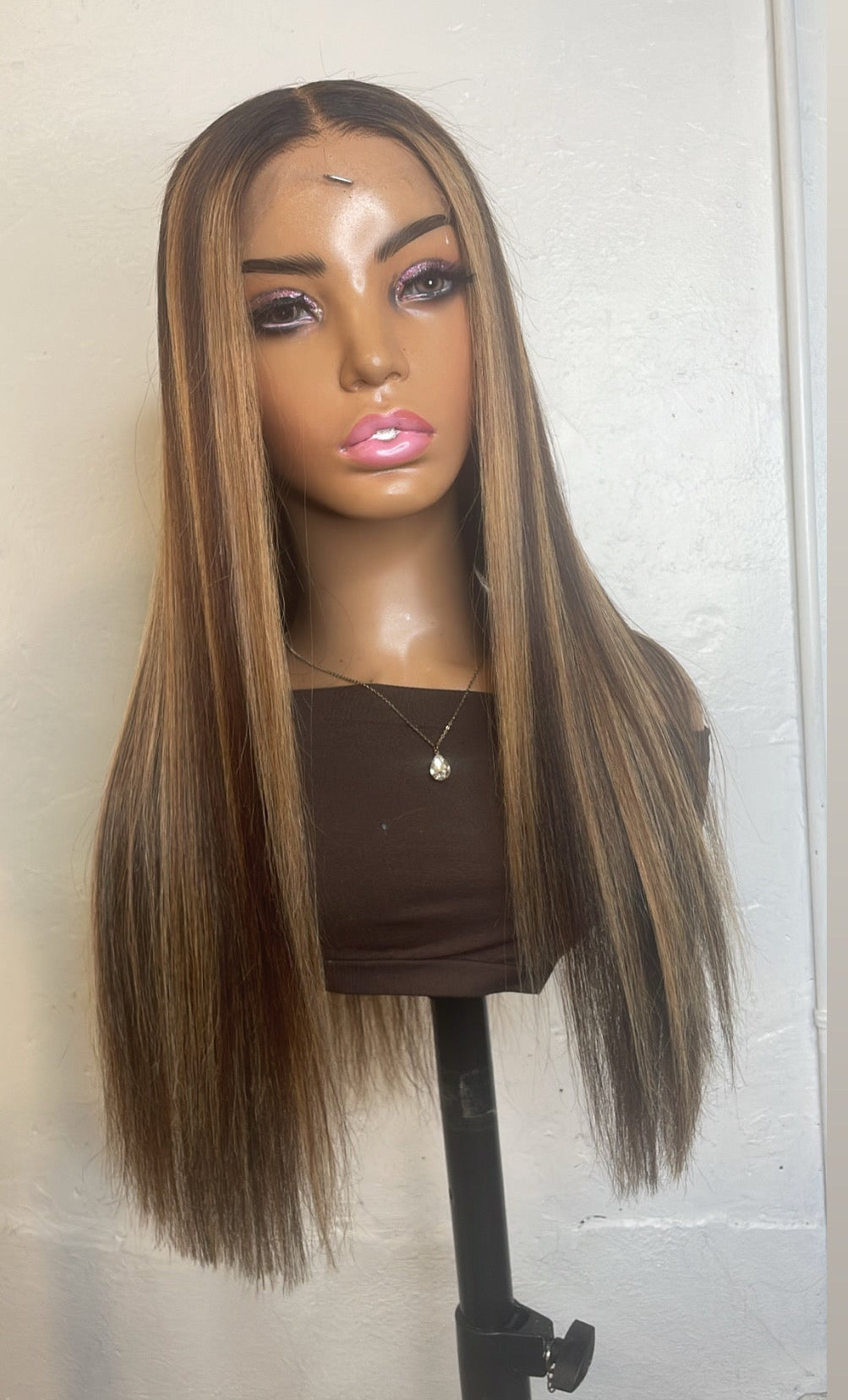 This is a beaitifully highlighted custom wig with 5x5/6x6 closure. Hair used is 3-4 bundles of Raw Indonesian wavy hair.