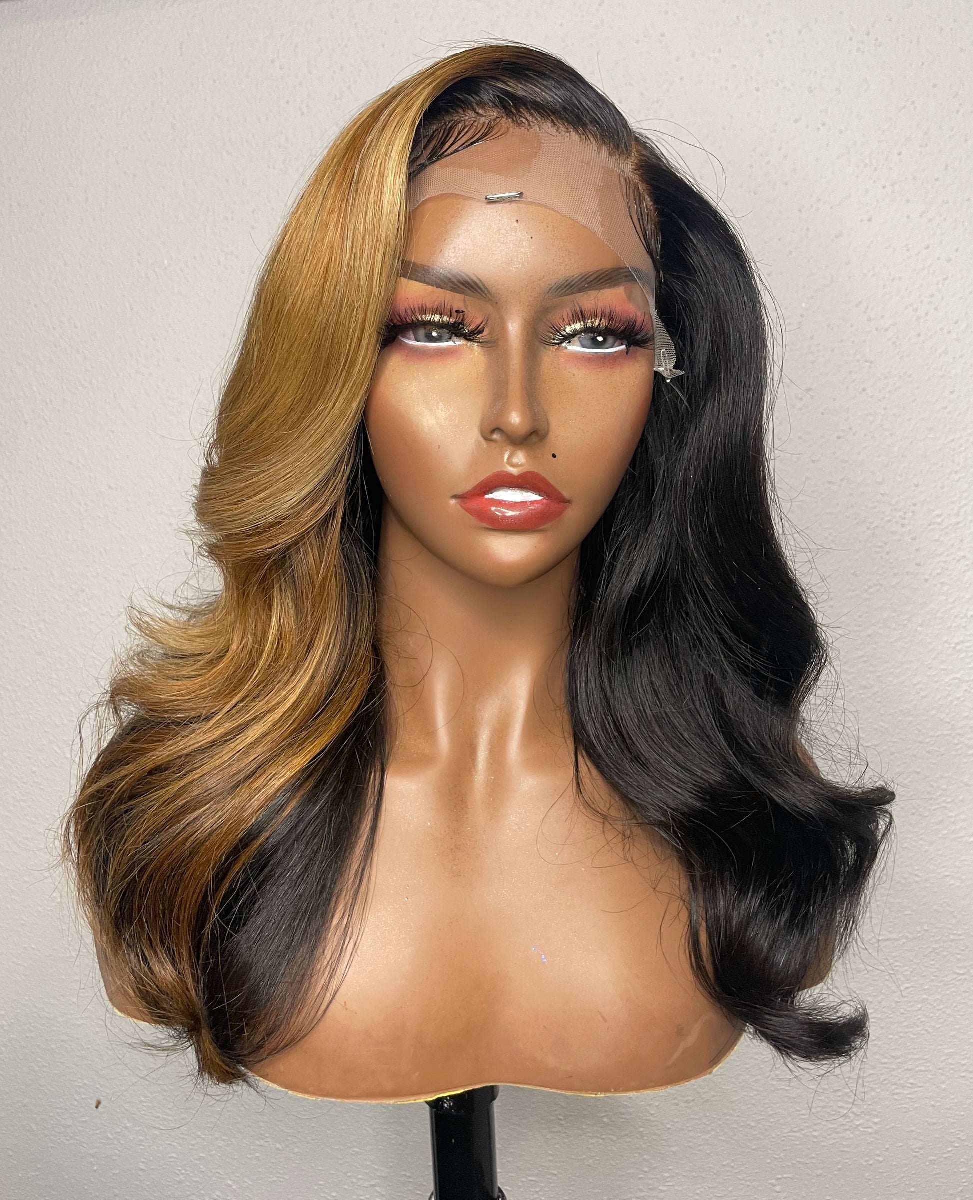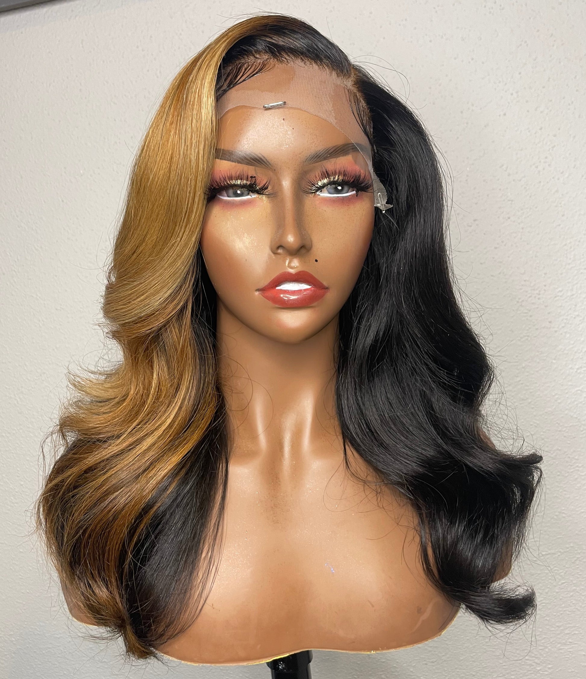 This is a beaitifully highlighted custom wig with 5x5/6x6 closure. Hair used is 3-4 bundles of Raw Indonesian wavy hair.